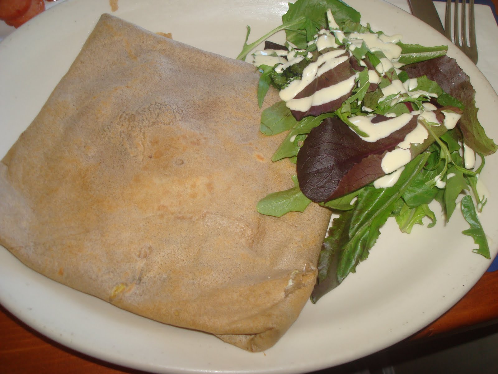 My dish was an Annecienne Buckwheat Crepe. It had Egg sunny side up, ham, swiss cheese,
