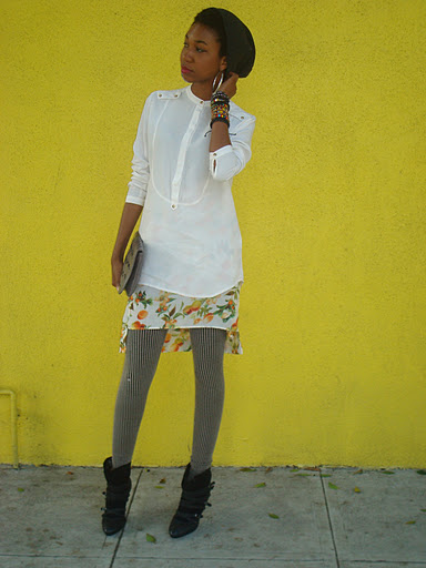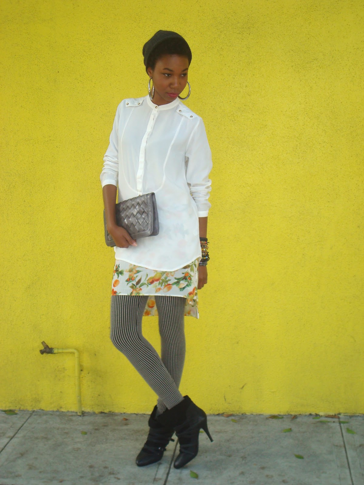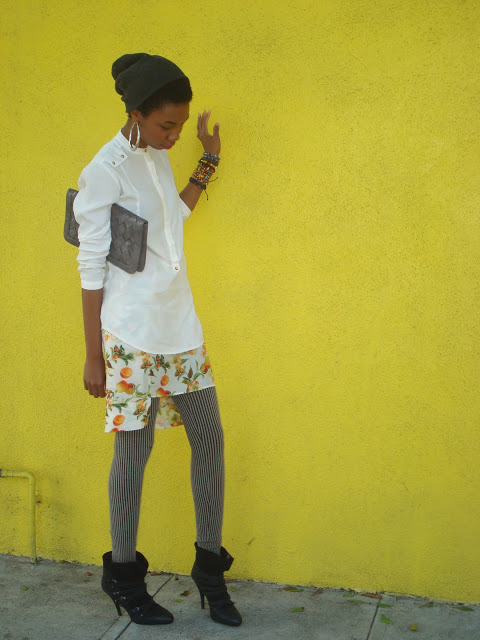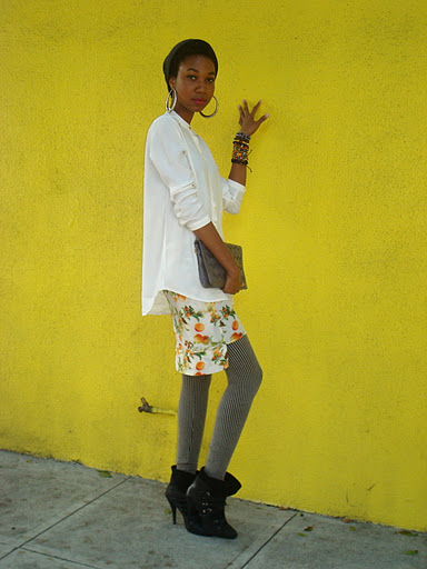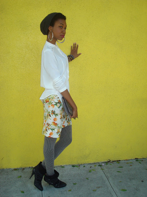 Oh yes i did! The citrus printed blouse from my previous post has been transformed into a skirt. It was quite the struggle to get it past my shoulders down to my waist, but that did not stop me from making my vision come to life.