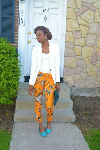 ZARA blazer, tank, pants, and loafers, ASOS clutch.