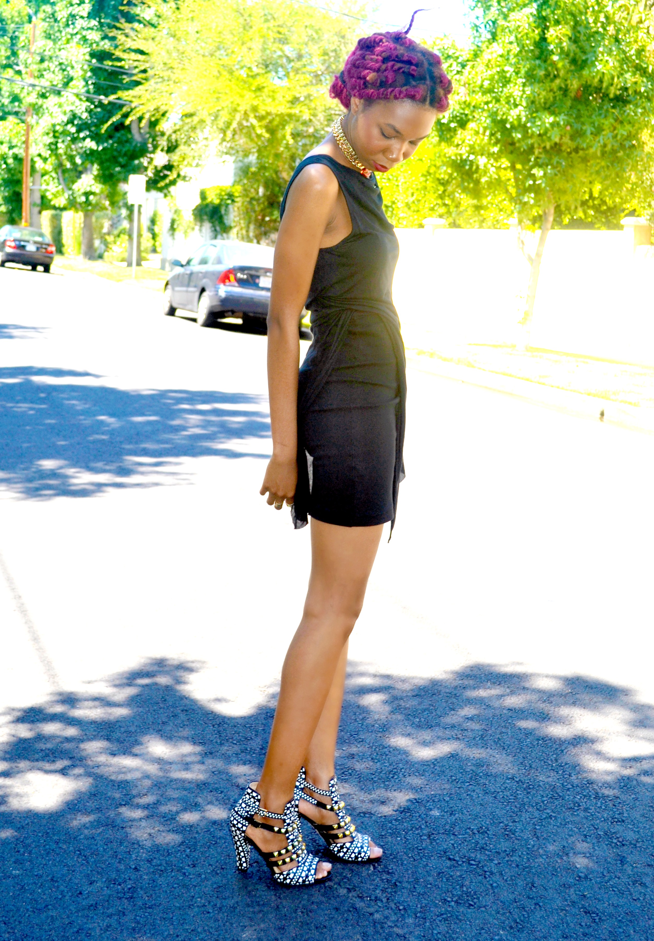 HELMUT LANG asymmetrical top, AMERICAN APPAREL, bodycon skirt, ZARA shoes, and choker, TOPSHOP choker