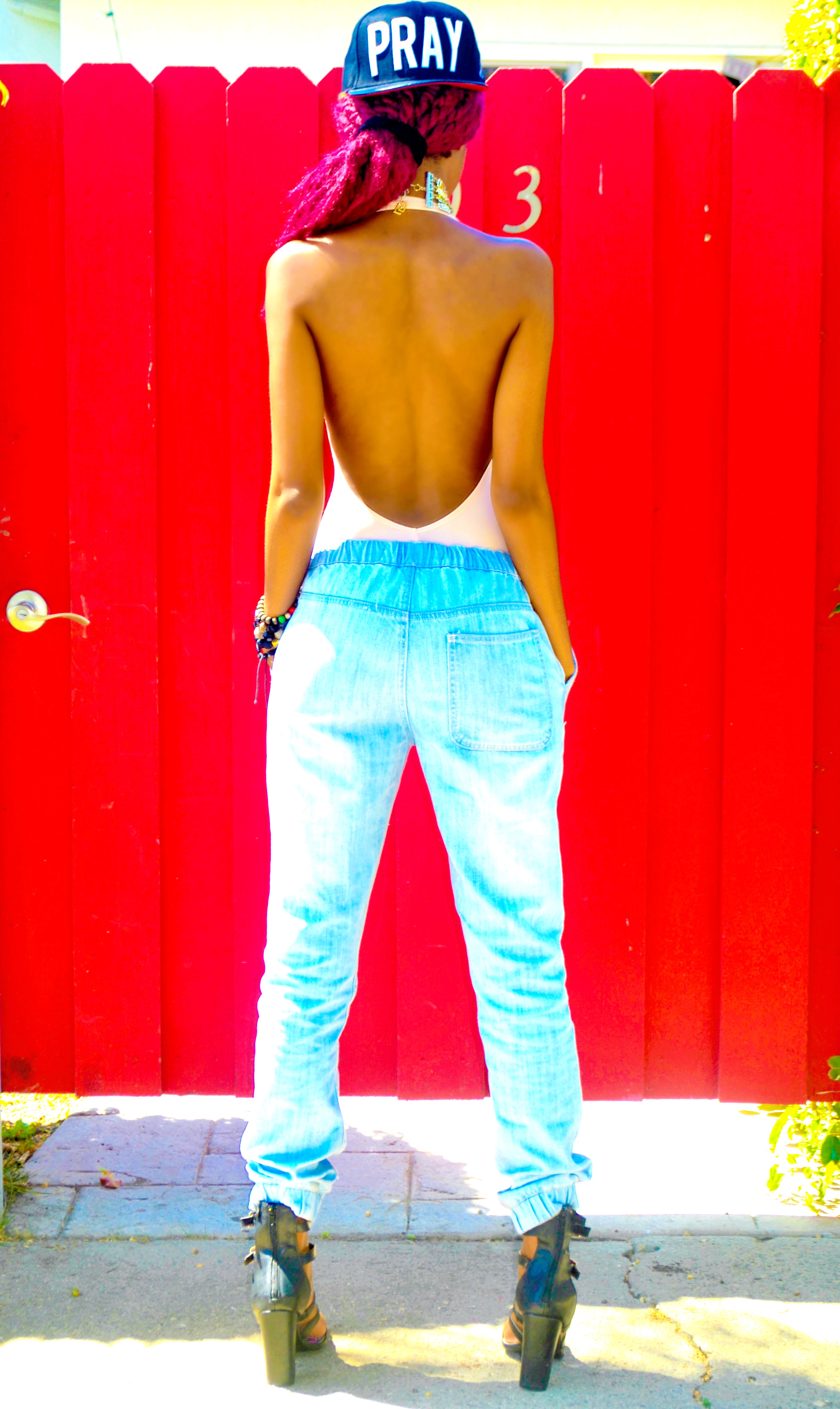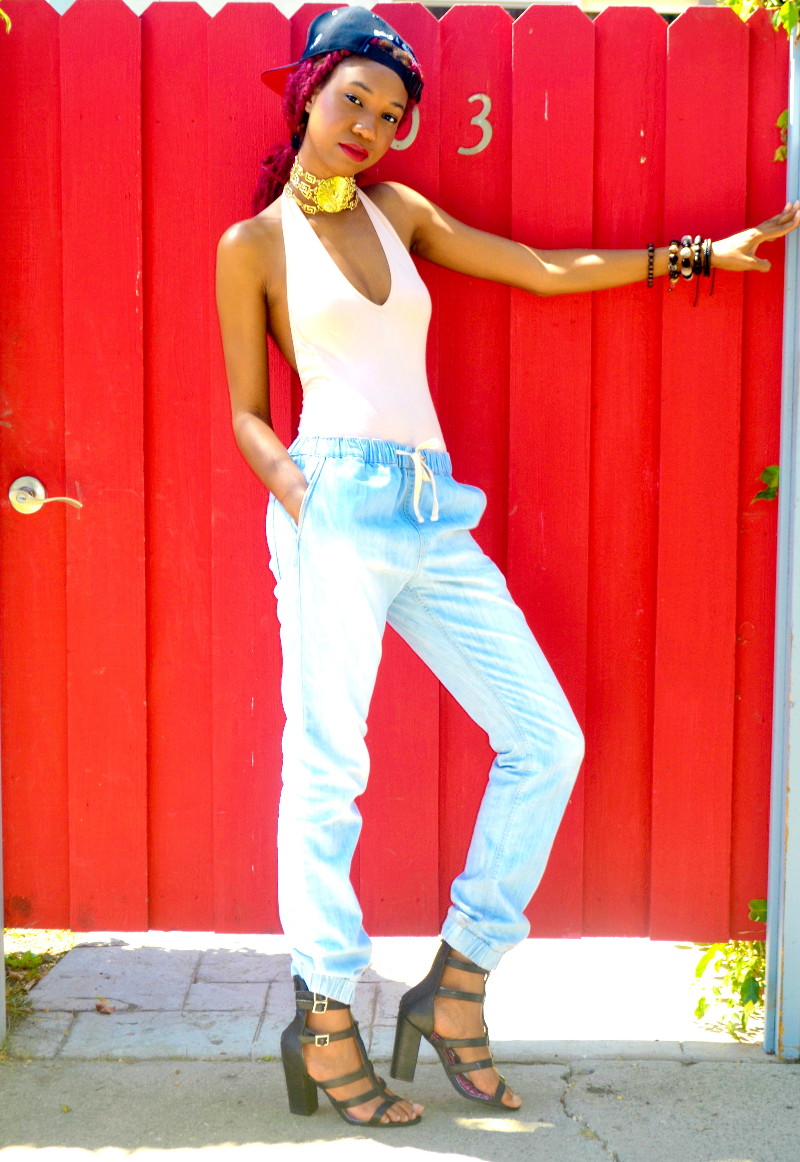 7 DAYS OF PRAY: DAY 3(URBAN EDITION) September 6, 2014September 9, 2014 PRAY buckle strap cap, AMERICAN APPAREL halter leotard, TOPMAN denim joggers ( try here, here, and here), NEW LOOK block heel gladiator sandals(try here) Share this: Share on X (Opens in new window) X Share on Facebook (Opens in new window) Facebook Like Loading...