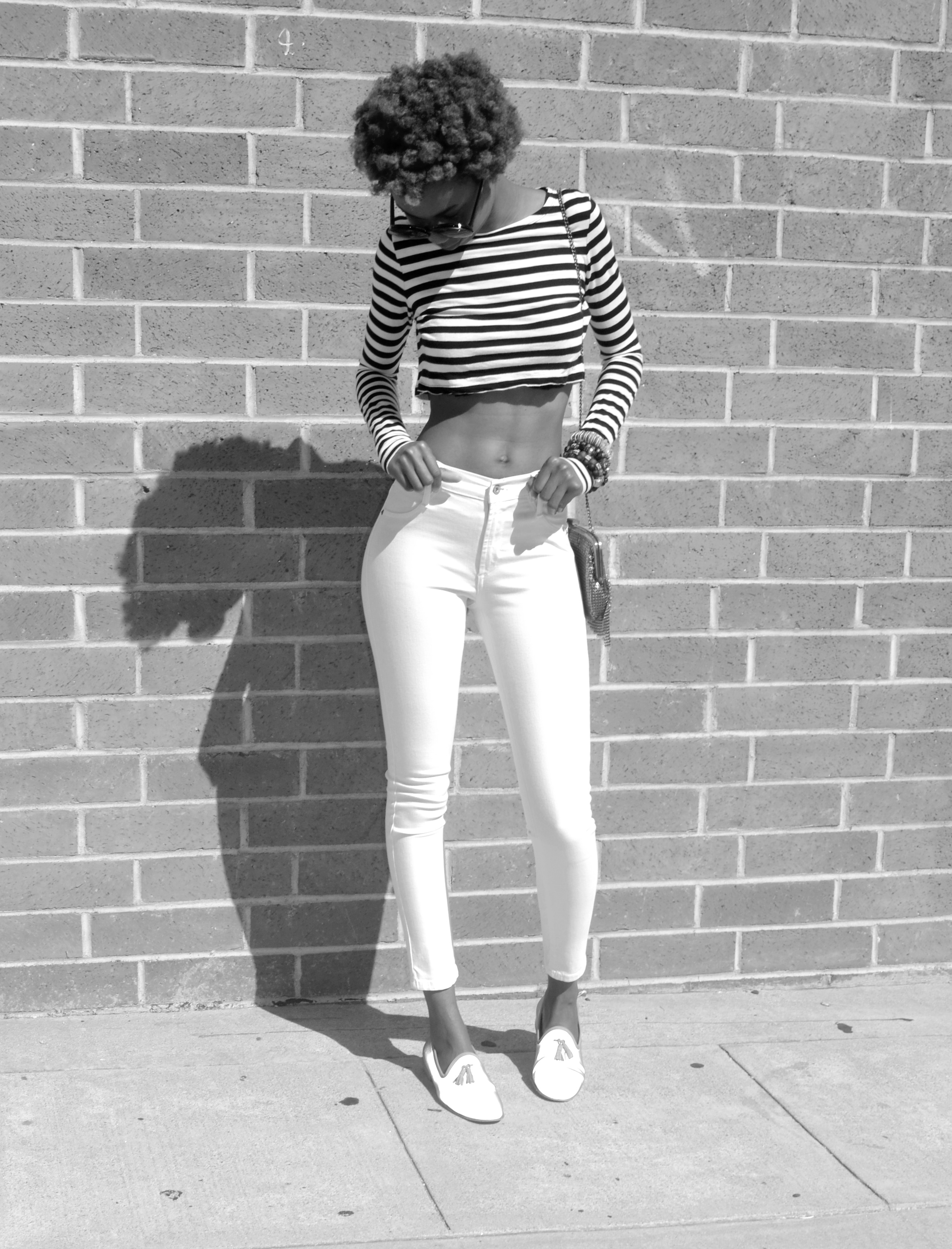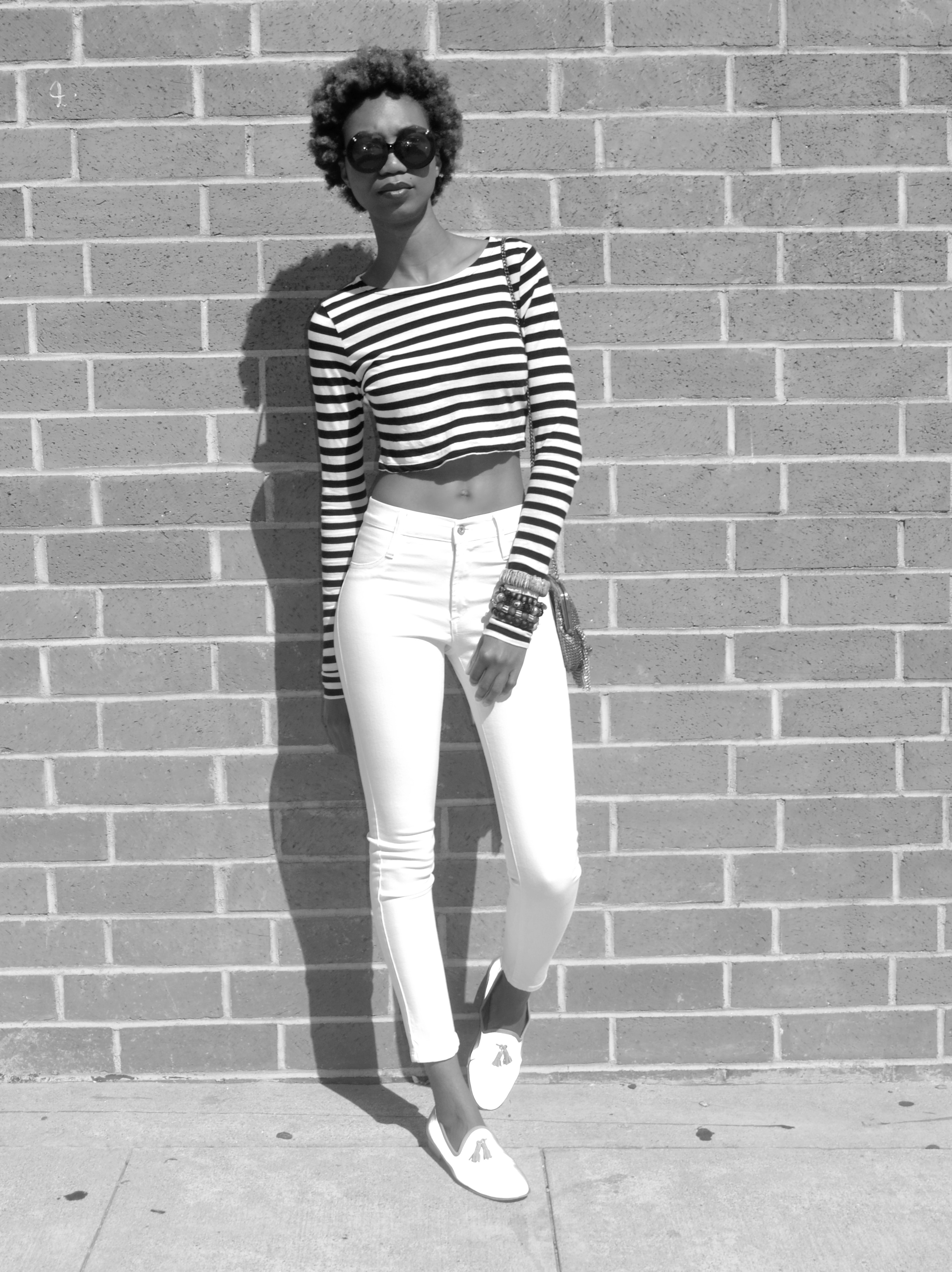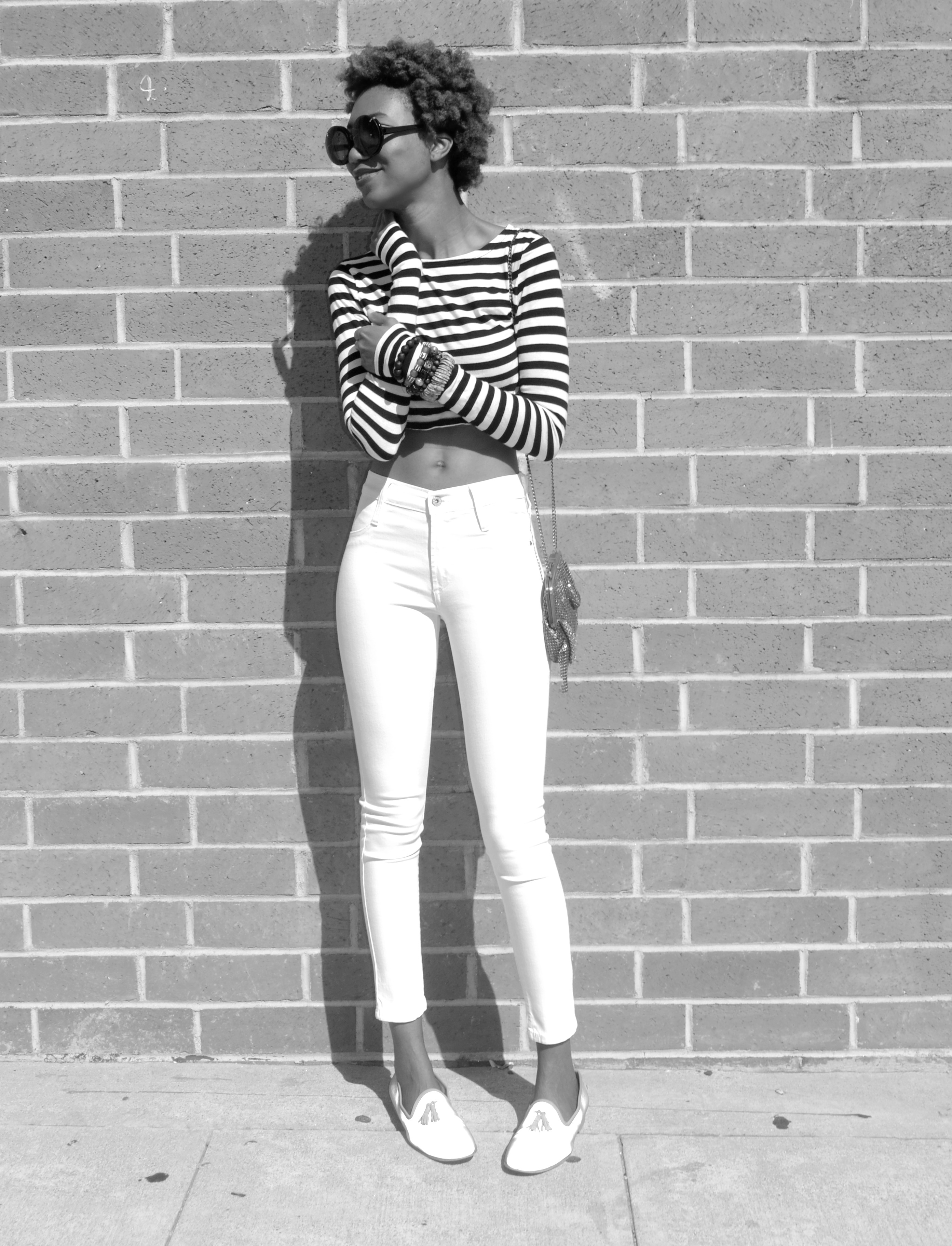 ZARA long sleeve crop (try this) and bag, JAMES high class skinny in frost white (here), DEL TORO 3M tassel slipper (here)
