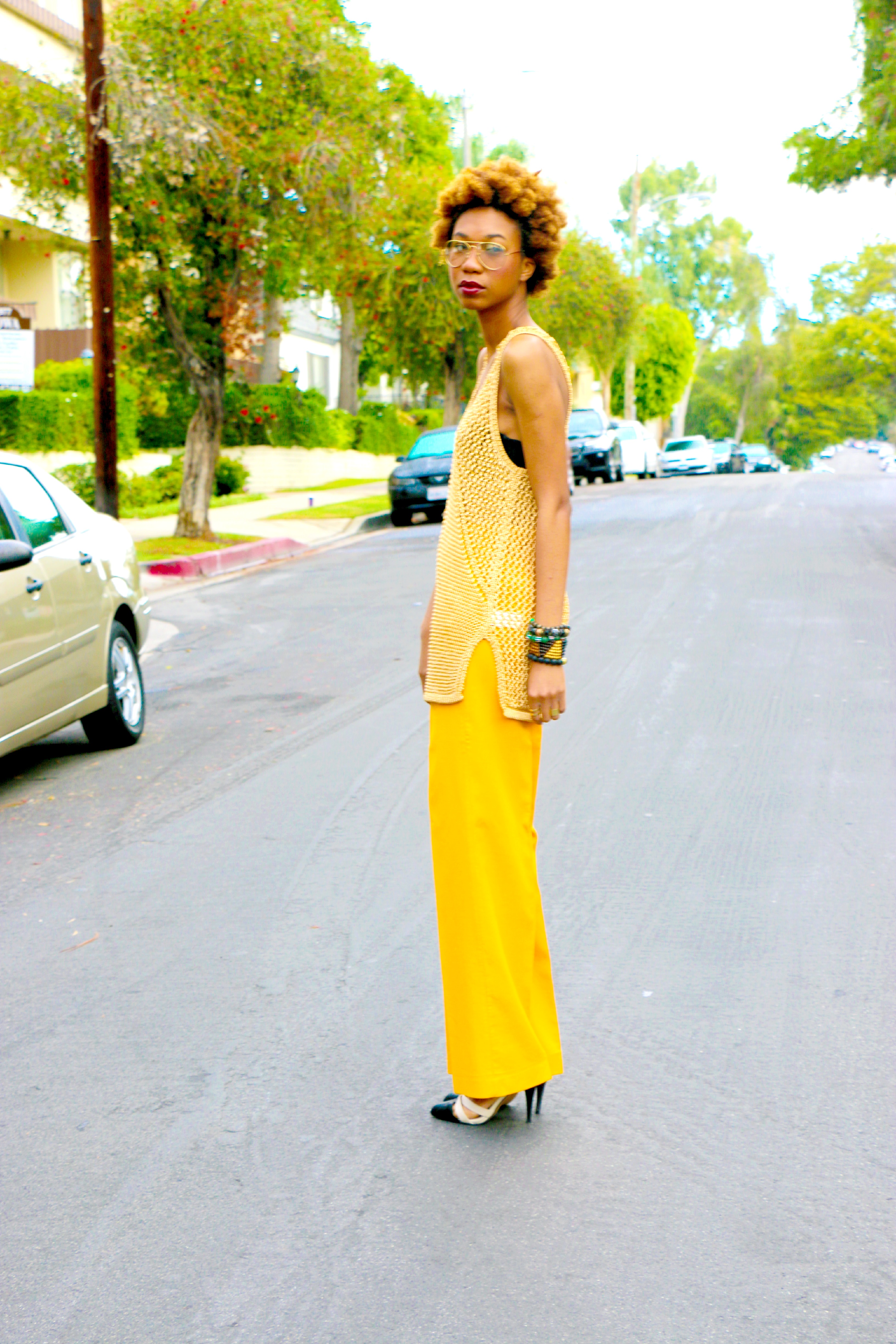 Modern 70s December 21, 2014December 22, 2014 H&M crotchet tank, ZARA mustard wide leg pants (here), BETSEY JOHNSON contrast heels (as seen here and here). Share this: Share on X (Opens in new window) X Share on Facebook (Opens in new window) Facebook Like Loading...