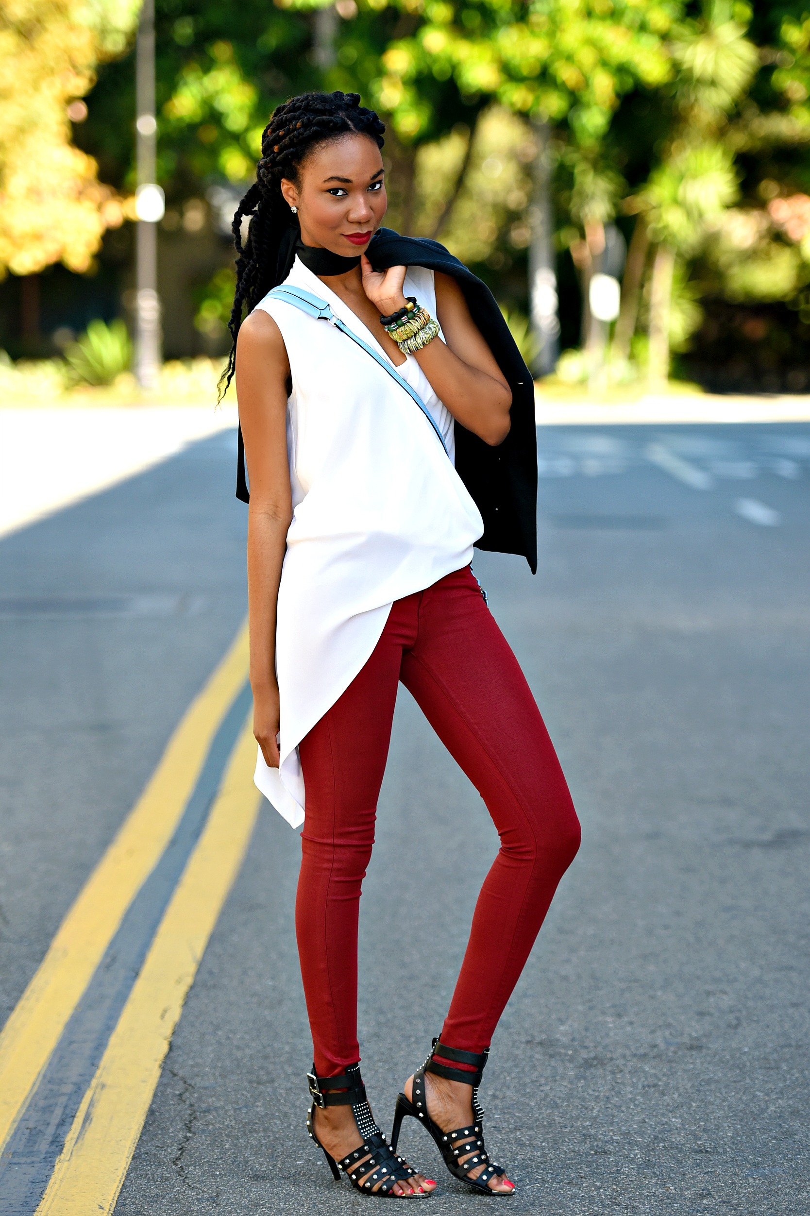 I go through moods when it comes to clothing, and lately, I have been very interested in minimal pieces with standout details or outer layers. Take this white top for instance, simple cut but the asymmetric bottom gives it a little excitement. With the pairing of the skinny pants and ombre denim sleeve jacket from Dries Van Noten.