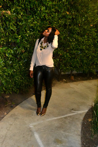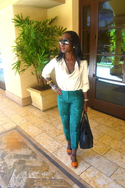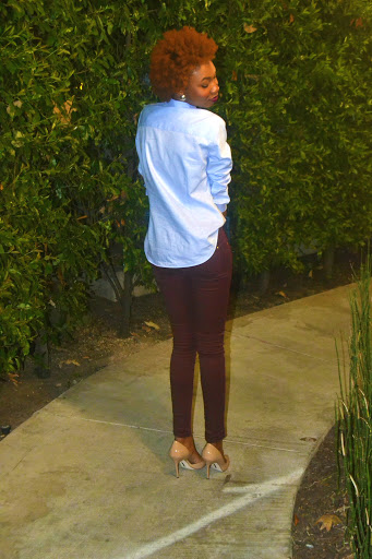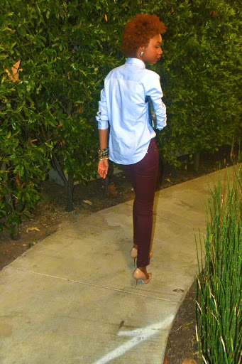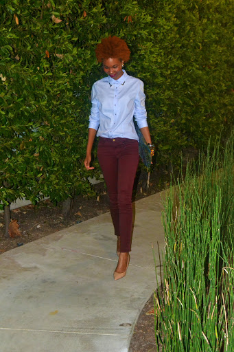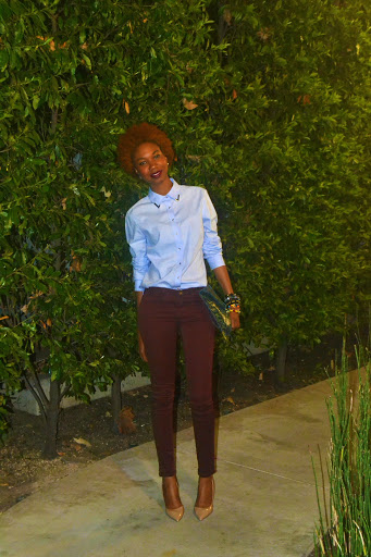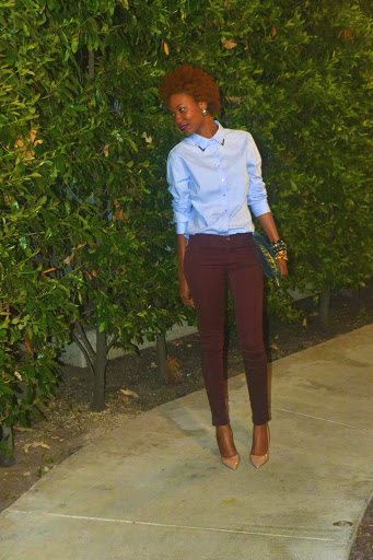 ZARA button up and skinnies, BOUTIQUE 9 pumps, ASOS clutch .