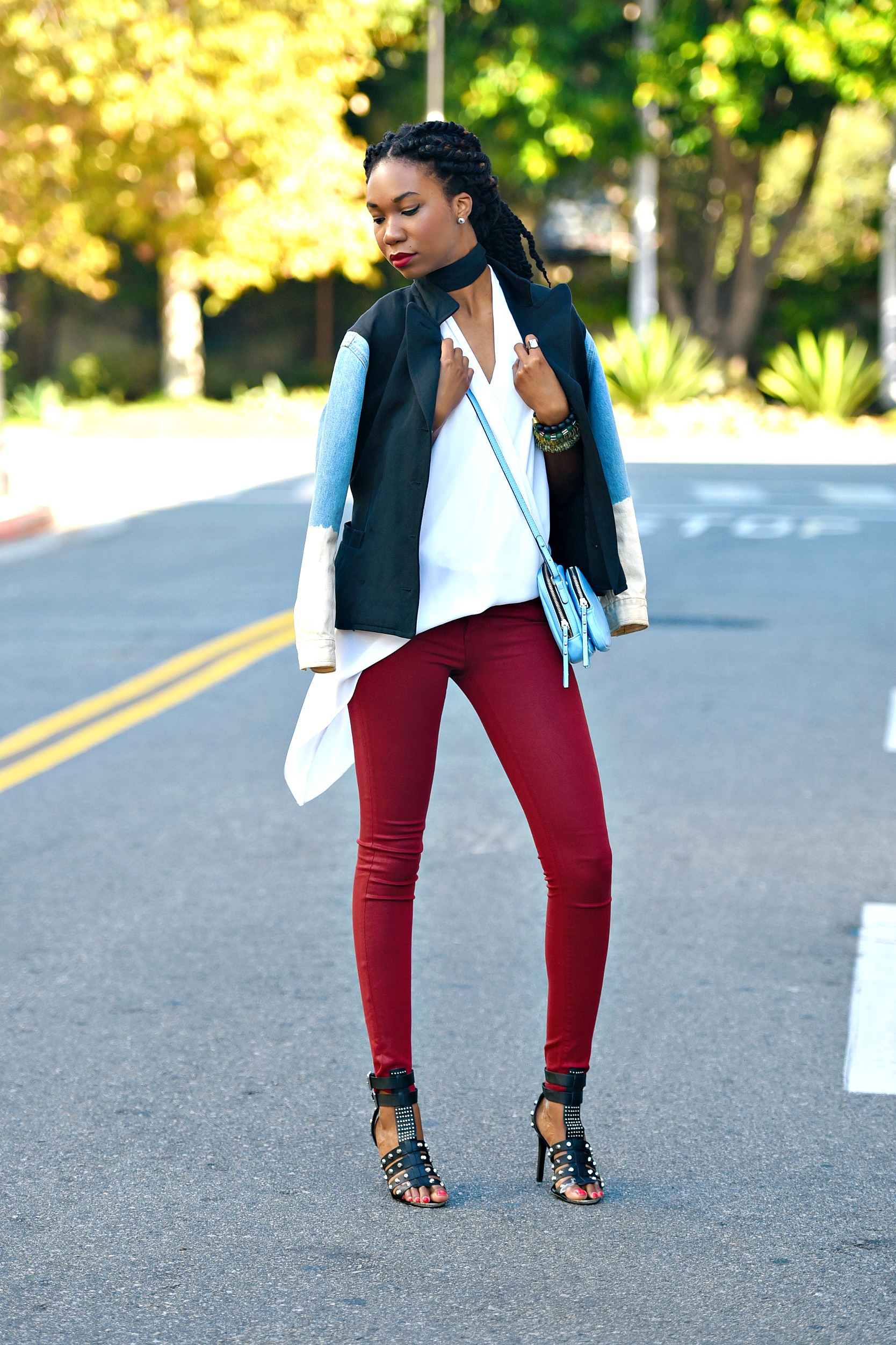 I go through moods when it comes to clothing, and lately, I have been very interested in minimal pieces with standout details or outer layers. Take this white top for instance, simple cut but the asymmetric bottom gives it a little excitement. With the pairing of the skinny pants and ombre denim sleeve jacket from Dries Van Noten.