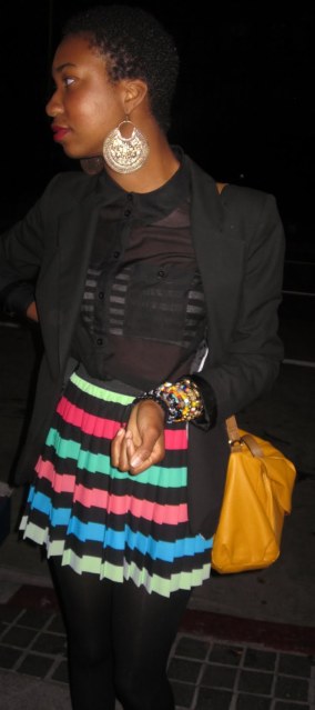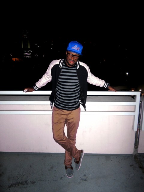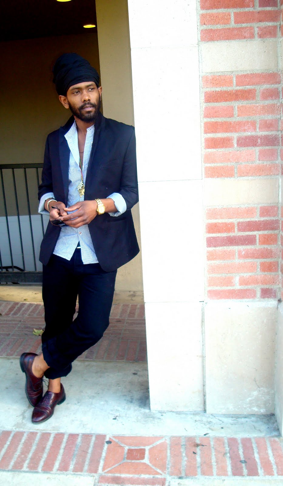 I met this handsome poet outside of the UCLA Jazz Reggae Festival, and I was really digging his laid-back look. I like how he paired his blazer with a striped tunic,and brogue shoes. And tell me you agree with me when I say,his pants rolled up to keep it less formal was a great idea! It gives his look that oomph factor.