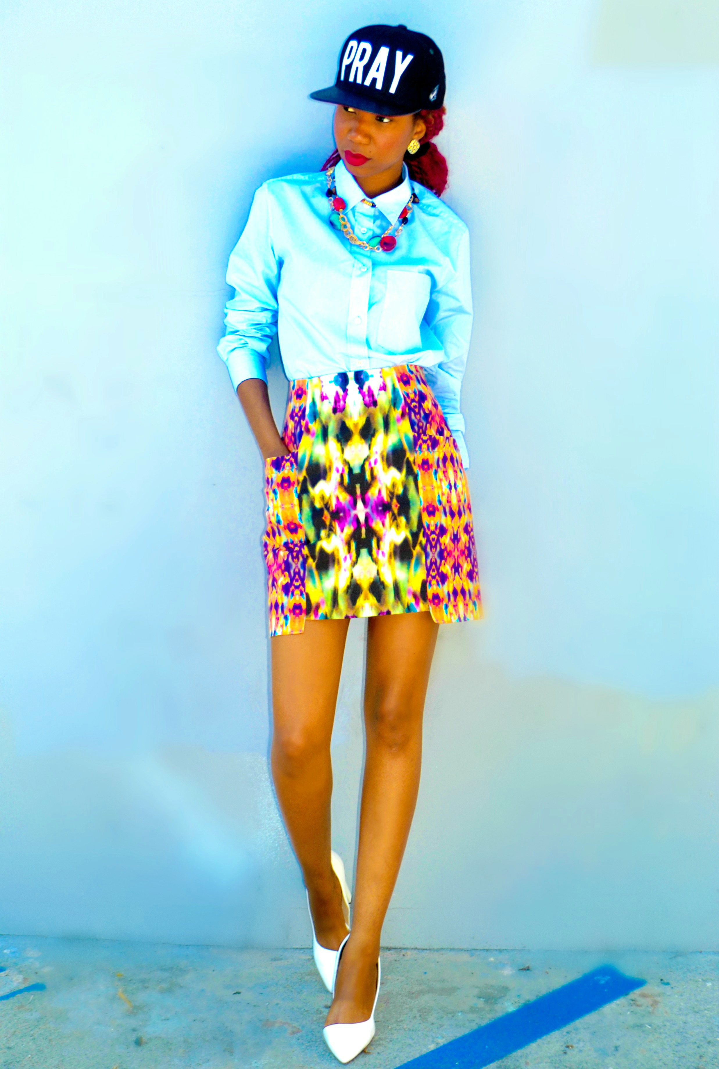 Cure your Monday blues with a basic long sleeve shirt paired with an over-the-knee pencil skirt for a subtle look. Doctor’s orders.